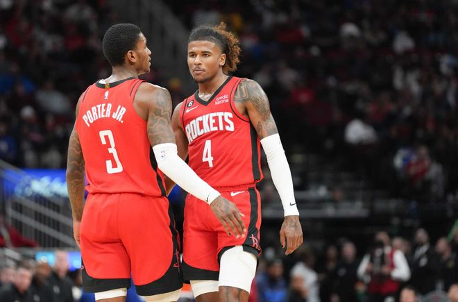 作为2021届的榜眼秀,杰伦-格林耗费了火箭队4年时间培养,不过最终在交易杜兰特的时候,在球队管理层心中,杰伦-格林仅是排在队中第六顺位的新秀,在当时申京、小贾、阿门、伊森和谢泼德这五位球员,火箭队一位也没有舍得送给太阳队。
