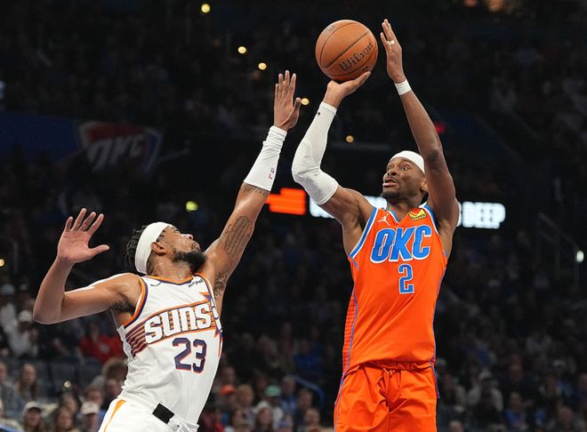 雷霆主场迎战太阳,雷霆方面杰伦复出,迎来赛季首秀,哈滕、威金斯缺阵,太阳方面杰伦格林、阿伦、邓恩缺阵,雷霆一度领先15分,太阳在第四节一度把分差追到1分,可惜功亏一篑,最终雷霆以4分优势拿下比赛。亚历山大20中10得到37分3板8助,切特13中8得到23分8板,太阳方面吉莱斯皮16中9(三分11中6)得到24分3板4助,布克13中5得到21分8板6助。