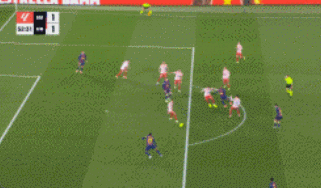 第65分钟,莱万送出助攻,奥尔莫禁区打门得分,帮助巴萨2-1完成反超。